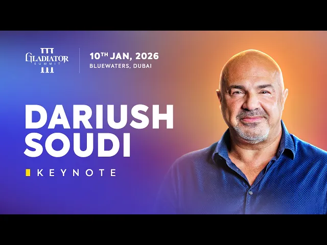 Dariush Soudi is the founder of Gladiator Summit and ARENA Capital, with over 40 years of business experience. Recognised as one of the most inspiring entrepreneurs in the Middle East, he has built, lost, and rebuilt multiple multimillion-pound ventures across industries, including sales, smart parking solutions, consulting, AI engagement platforms, and veterinary healthcare.